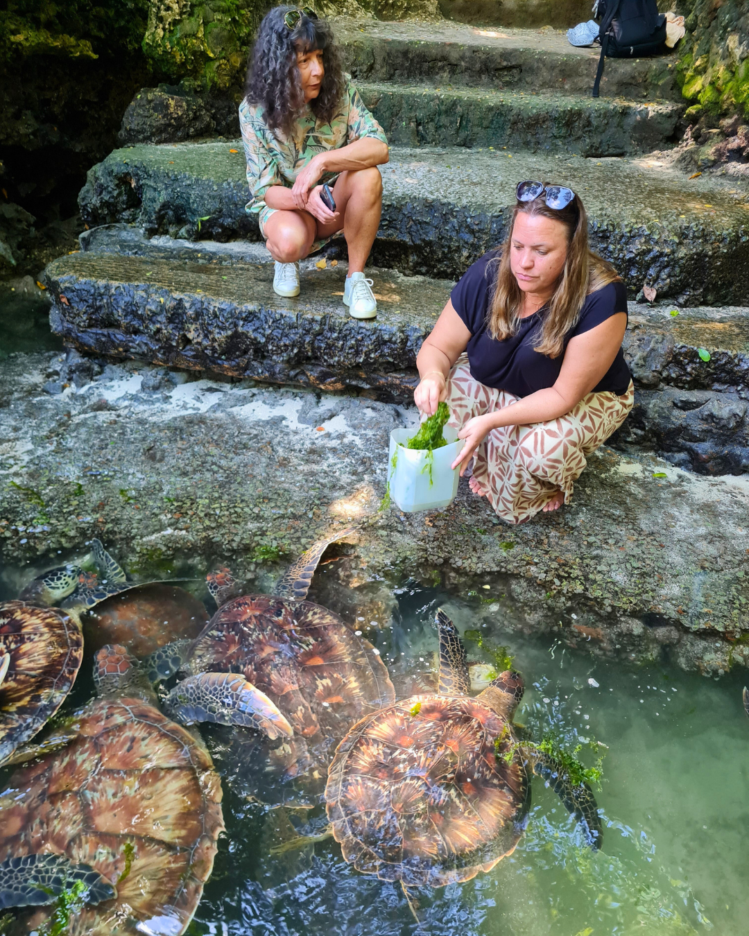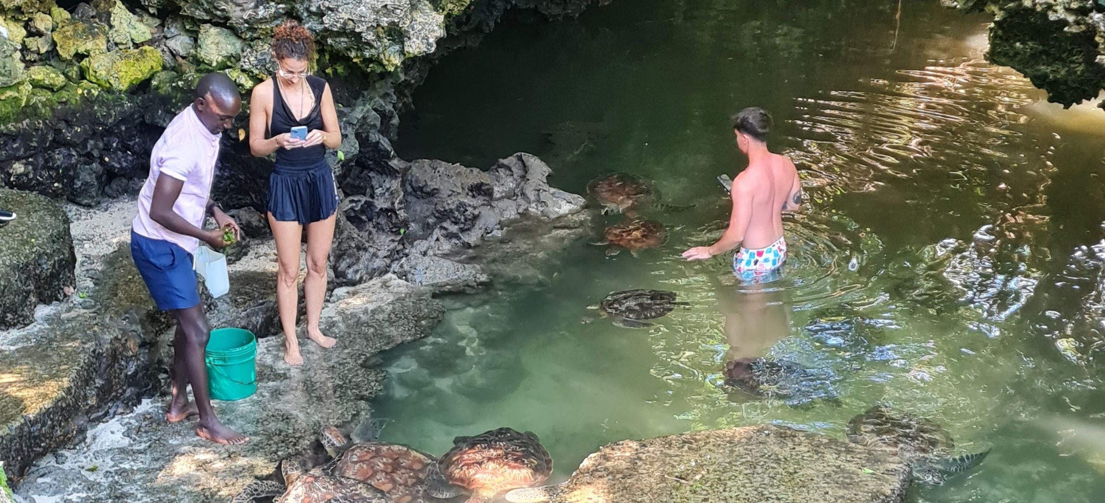 Vi besökte också Zanzibars näst största by, Nungwi, där vi fick en rundtur på den lokala fiskmarknaden. Här lagas fiskenät och byggs båtar, och Malin fick till och med prova på att täta en fiskebåt. Vi avslutade med ett besök på Turtle Aquarium, där man kan mata eller bada med havssköldpaddor i en naturlig tidvattenpool. Här tas skadade sköldpaddor om hand innan de släpps ut i havet igen. En fin och meningsfull upplevelse!