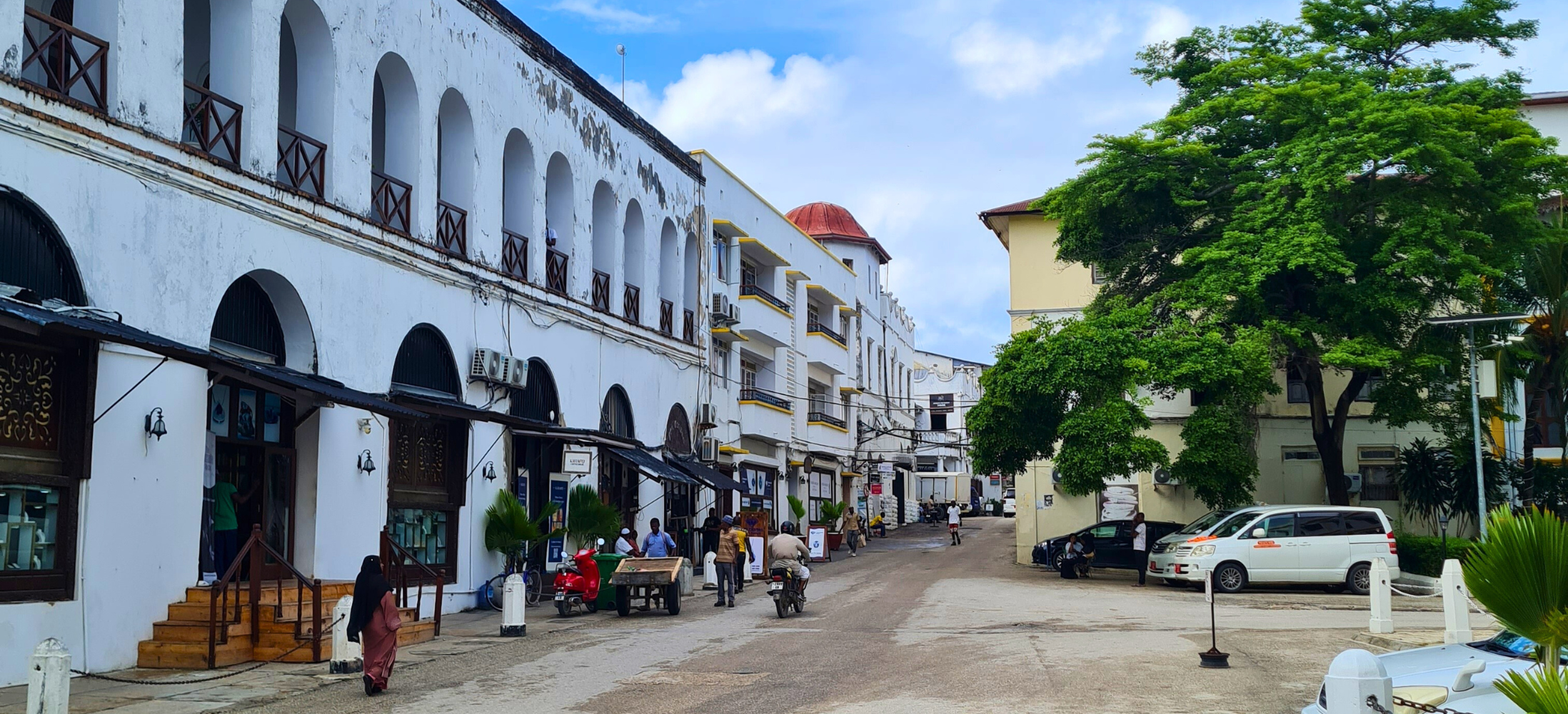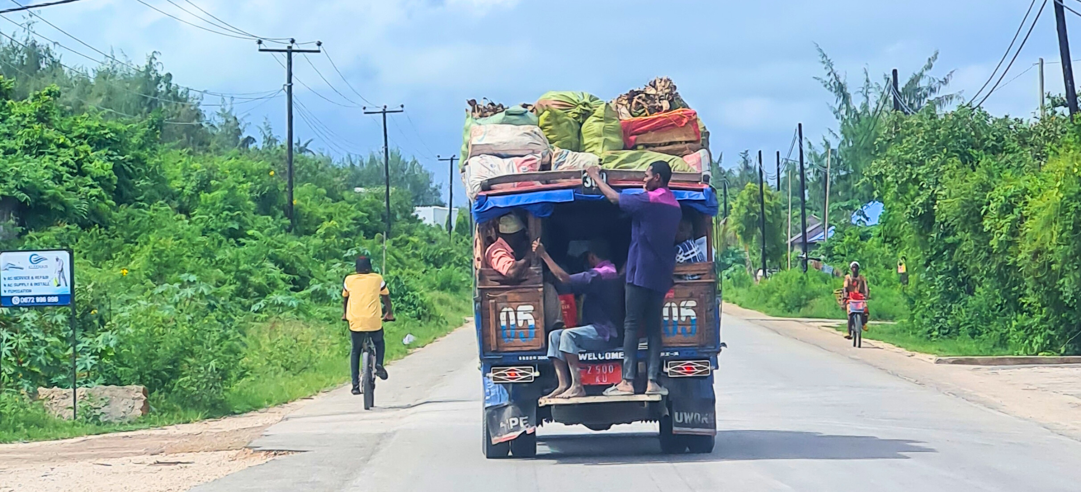 Vi reste runt hela ön och besökte hotell från sydöstra delen upp till nordväst. Det är vänstertrafik på Zanzibar och vi rekommenderar att ta sig runt med taxi eller organiserade utflyktsprogram. Ön är grön och kontrastrik – från enkla byar och vardagsliv till finare hotellområden. Det är fullt av cyklar, mopeder, bilar och små lokalbussar som stannar för att plocka upp folk. Max 20 personer får plats, och har du med dig väskor eller annat är det upp med det på taket som gäller.