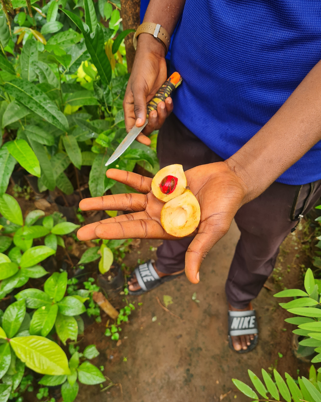 En annan utflykt som vi gjorde och rekommenderar (det är nästan ett måste!) är en Spice Tour. Vi gick ut i djungeln och fick uppleva kryddorna i sin naturliga miljö. Kryddhandeln har varit mycket betydelsefull för Zanzibar i flera hundra år, och särskilt nejlikan har spelat en stor roll och gjort att ön har blomstrat. Vi fick smaka och dofta på muskot, nejlika, ingefära, kaffe, kryddpeppar och mycket mer. Vi fick även lära oss att fröna från frukten annatto används som naturligt färgämne i mat, hudvård och smink. En man som kallades Mr Butterfly klättrade bokstavligen upp i en palm för att hämta en kokosnöt åt oss och vi blev utsmyckade innan vi lämnade och åkte vidare.
