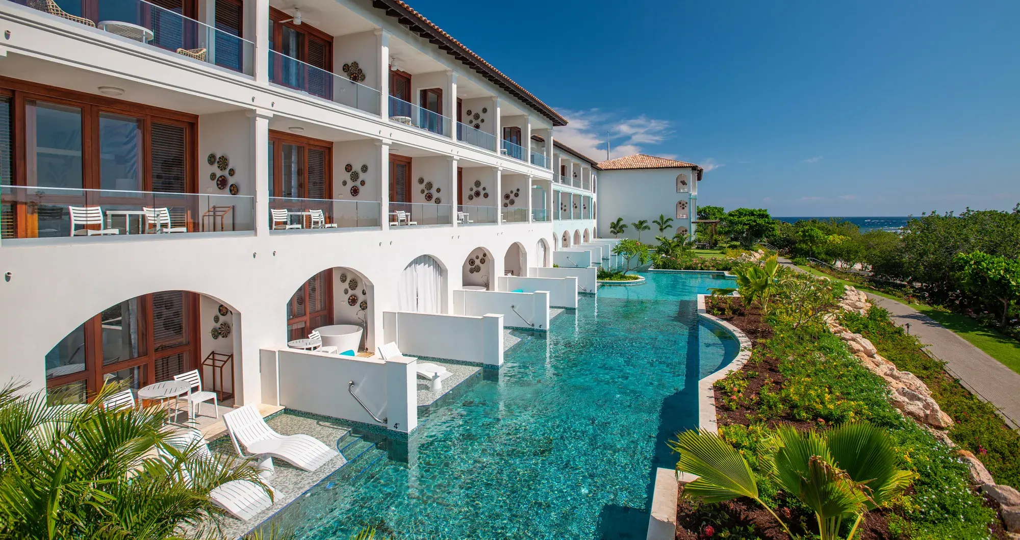 Sandals nyöppnade resort på Curacao ligger vackert inbäddad vid strandlinjen i Nieuwpoort Santa Barbara på den södra delen av ön där ökenlandskapet sluttar mjukt mot det azurblå havet. Som alla Sandals hotell tillåts endast vuxna och framförallt riktar de sig till par. Alla rum är fina i modern design med ljusa färger som för tankarna till mjuk sandstrand och böljande hav med många nyanser av blått. Och huvudpoolen, den går inte av för hacko, en helt magisk infinitypool i två våningar med inbyggd poolbar som är en självklar samlingsplats för många!