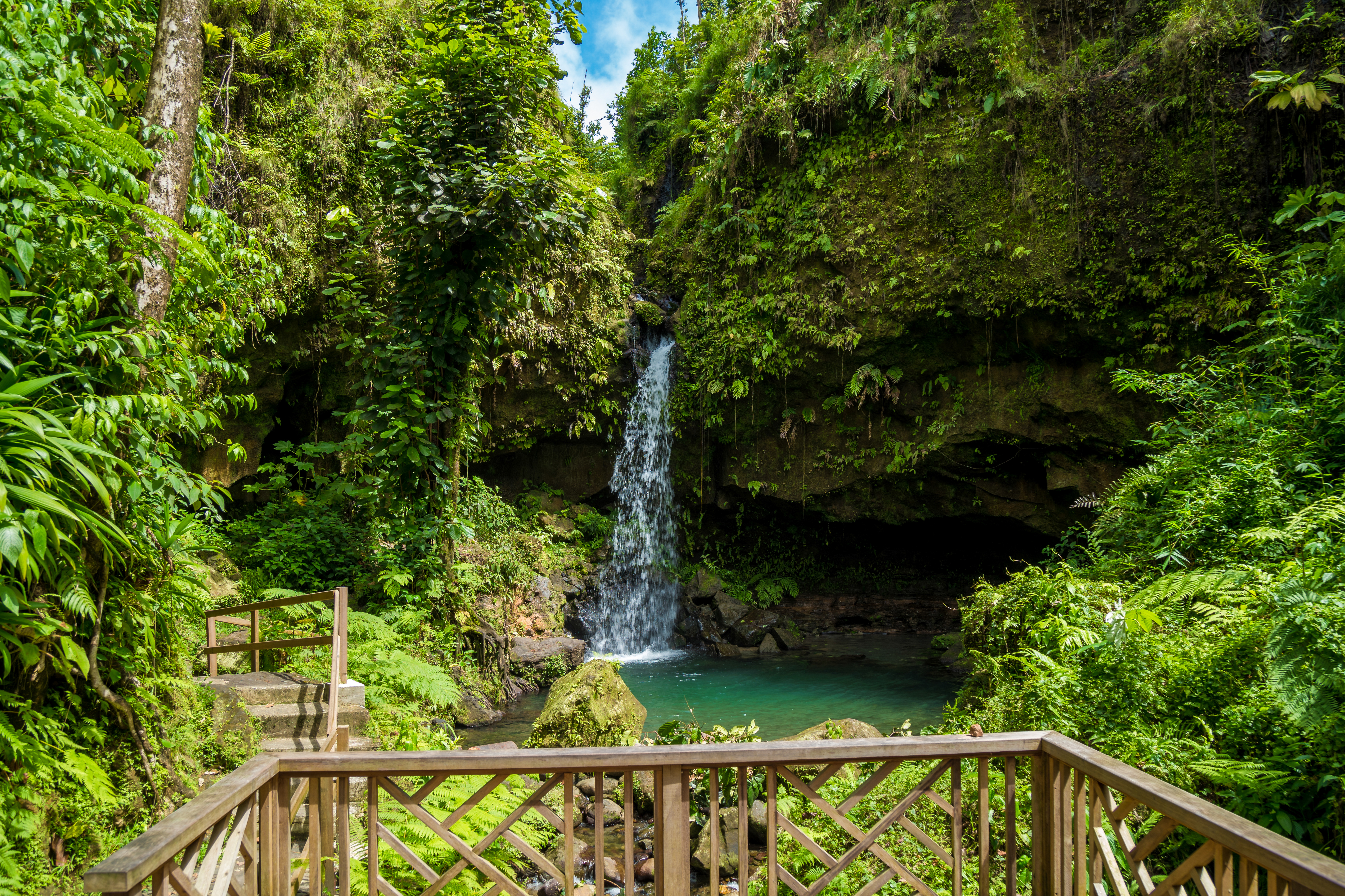 Dominica - The Nature Island. Den här bergiga ön är en vulkanö vilket man tydligt kan se på den mörkt glänsande sanden på de få stränder som finns. Varför ska man då resa till Dominica? Jo, för den orörda, tropiska regnskogen med porlande vattenfall, en väldigt dramatisk och spännande natur. Gillar du ekoturism så är det hit du ska resa!