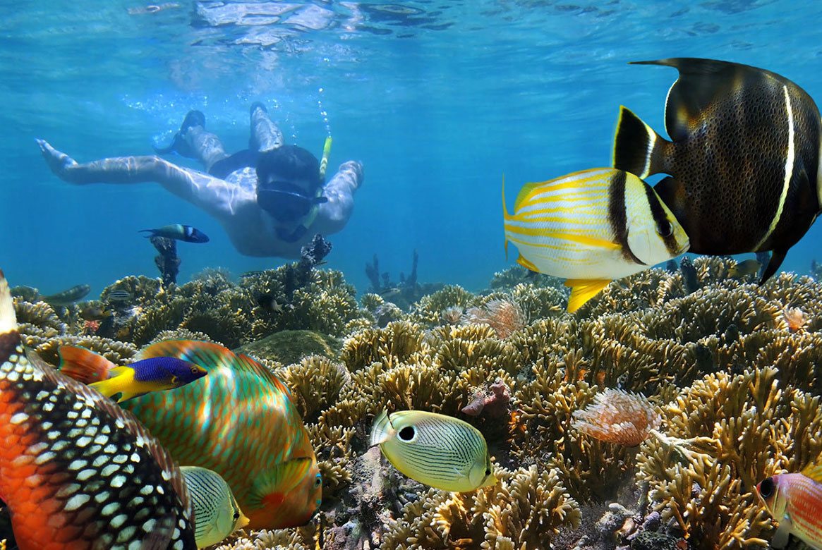 Ön med det färgglada husen, underbara korallrev och fina badvikar med glittrande turkost vatten. Ett Eldorado för dykare och snorklare!