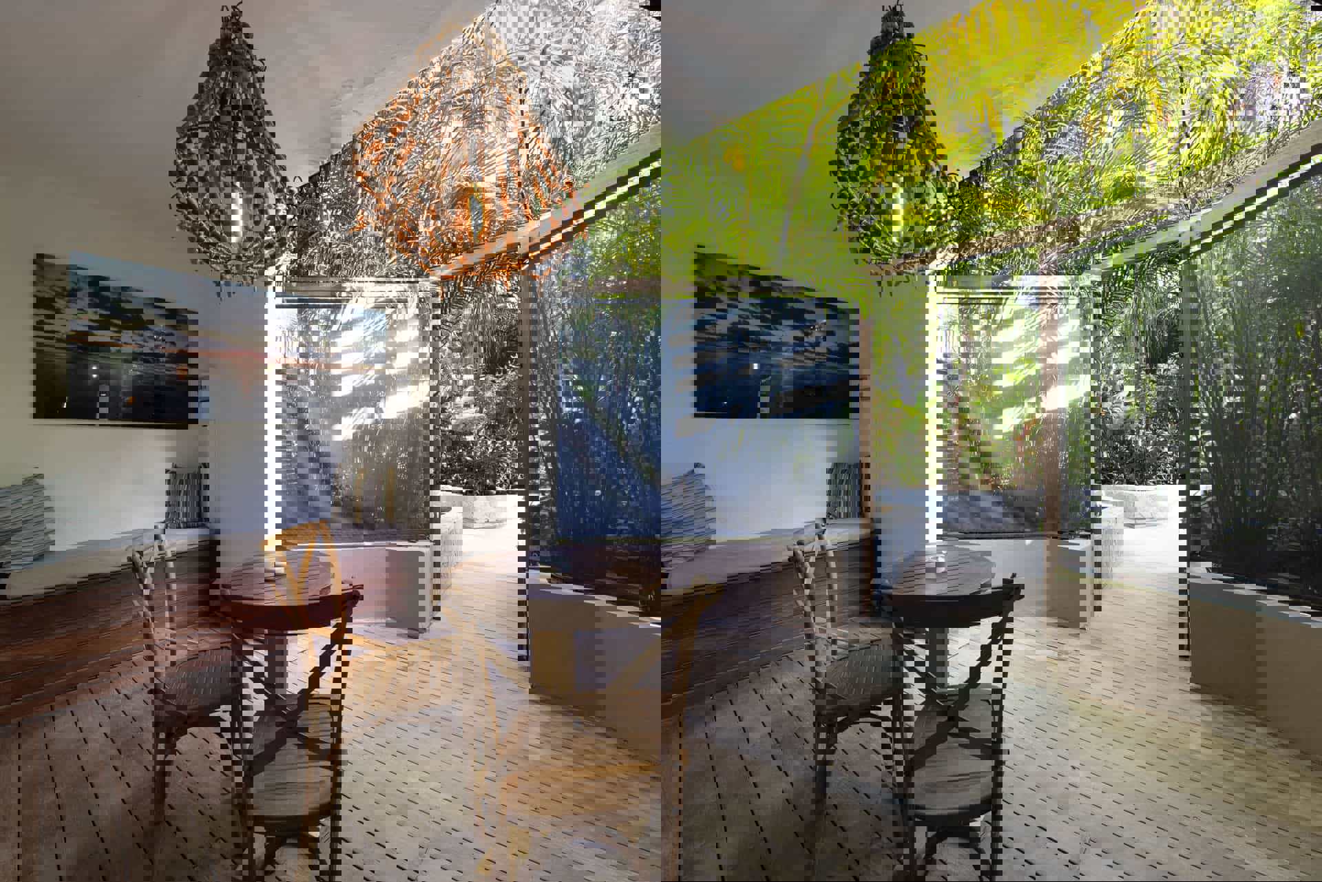 Nere på stranden ligger den populära restaurangen som serverar allt från frukost till middagar, det är här allt händer! Det kan vara underhållning, live musik, modevisningar och deras berömda Lobster night. Det är ett måste om ni är på plats att prova deras specialitet – grillad hummer. Här möts turister och lokalbefolkning för att njuta av god mat, bra musik och det fantastiska läget. Välkommen till paradiset!